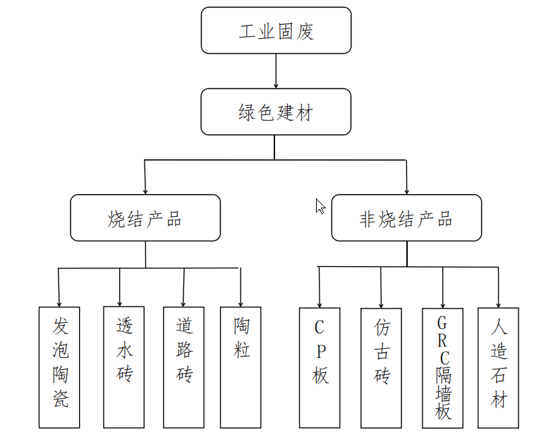 以工業(yè)固廢為主要原料,添加少量的膠凝材料或硅質、石灰質材料進行化學反應,高壓或常壓養(yǎng)護制得的產品。產品有蒸壓灰砂磚、粉煤灰磚、人造石材、CP 板、道沿石、仿石材磚等。