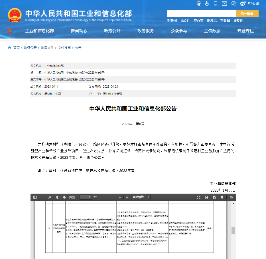近日,國(guó)家工信部發(fā)布的《建材工業(yè)鼓勵(lì)推廣應(yīng)用的技術(shù)和產(chǎn)品目錄(2023年本)》中,由咸陽(yáng)陶瓷院研發(fā)的“高效節(jié)能陶瓷干法制粉技術(shù)”作為綠色化、高端化、智能化技術(shù),被列為建筑陶瓷行業(yè)唯一一個(gè)鼓勵(lì)推廣的應(yīng)用技術(shù)。