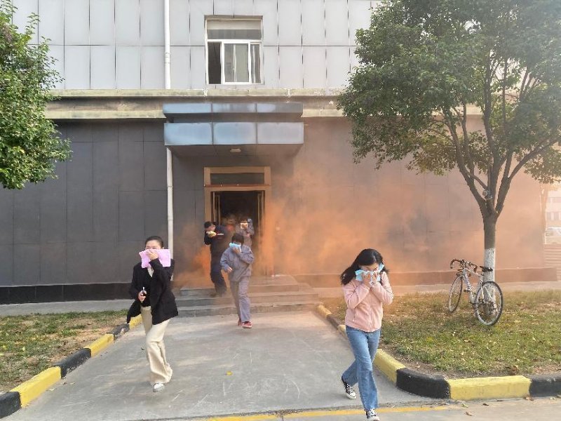 培訓后,按照安排安環部迅速組織各部門安全員、新員工、保安保潔及餐廚人員40多人在辦公樓展開滅火逃生演練,隨著一聲“著火了”大家有序左手用濕毛巾捂鼻口右手摸著墻冒著煙霧快速從辦公樓逃生門魚貫而出。