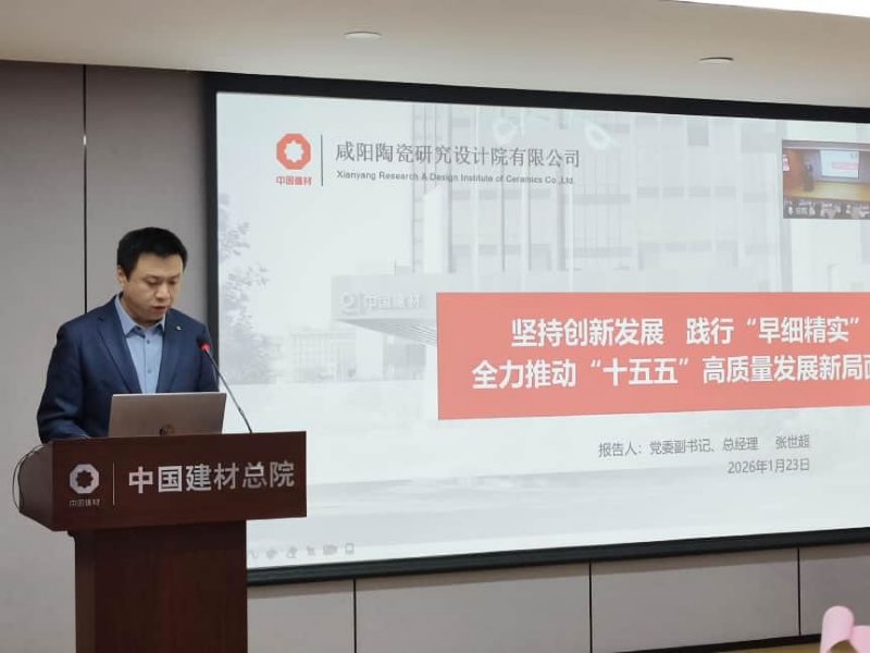 1月23日,咸陽陶瓷院召開2026年工作會議暨第二屆職工代表大會二次會議。中國建材總院黨委副書記、職工董事、工會主席張文進出席會議并講話,咸陽陶瓷院黨委副書記、總經理張世超作題為《堅持創新發展 踐行“早細精實” 全力推動“十五五”高質量發展新局面》的工作報告,咸陽陶瓷院黨委委員、常務副總經理、總法律顧問白戰英主持會議。
