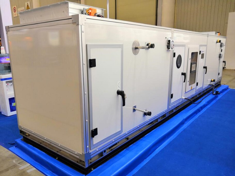 組合式空調機組是由各種空氣處理功能段組裝而成的一種空氣處理設備。適用于阻力大于100Pa的空調系統。機組空氣處理功能段有空氣混合、均流、過濾、冷卻、一次和二次加熱、去濕、加濕、送風機、回風機、噴水、消聲、熱回收等單元體。